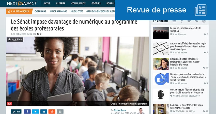 Le Sénat vient d’adopter un amendement inscrivant notamment « la maîtrise des outils et ressources numériques » au programme des écoles professorales, selon Next Inpact. « Il est grand temps aujourd’hui de nous attaquer à la racine du problème », avait déclaré l Catherine Morin-Desailly a présidente de la commission de la culture du Sénat, : « la formation des formateurs ». Dans […]