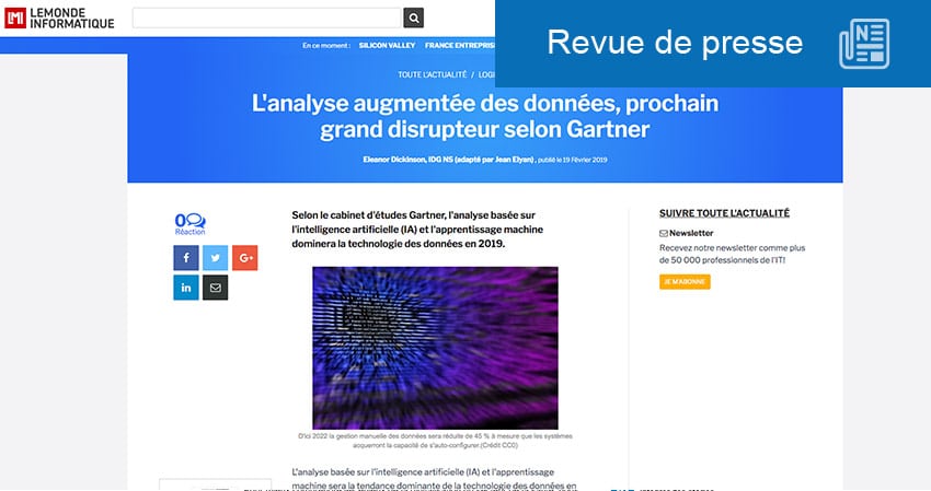 L’analyse basée sur l’intelligence artificielle (IA) et l’apprentissage machine sera le prochain grand disrupteur, indique Le Monde Informatique. Une annonce révélée lors du Data & Analytics Summit organisé par Gartner, entreprise américaine de conseil et de recherche dans le domaine des techniques avancées, qui prédit la réduction de la gestion manuelle des données de 45% d’ici […]