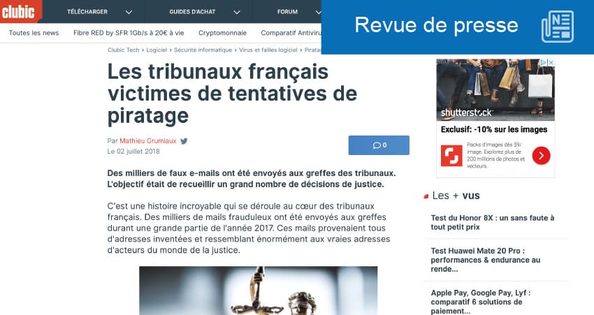 Durant une grande partie de l’année 2017, des milliers de mails frauduleux ont été envoyés aux greffes des tribunaux. Tous provenaient d’adresses inventées, inspirées de vraies adresses des employés de l’administration judiciaire, nous informe le site Clubic. L’objectif était de récupérer des décisions de justice émanant des différents tribunaux. Des tentatives de piratage qui auraient […]