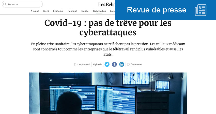 En pleine crise sanitaire, les pirates informatiques poursuivent leurs attaques, souligne le site Les Echos. Depuis le début de la pandémie, de nombreux spécialistes de la cybersécurité alertent sur les vols de données et le rançonnage informatique. Un « risque de pandémie numérique » est même évoqué. Aujourd’hui, le Covid 19 est le leurre à phishing « le plus utilisé depuis des années, voire depuis toujours ! » ont déclaré les chercheurs de l’éditeur de logiciels de protection des e-mails Proofpoint. Leurs cibles privilégiées : les milieux médicaux ainsi que les entreprises que le télétravail rend plus vulnérables. Les services de sécurité informatique des entreprises sont aujourd’hui sursollicités par les projets urgents de mise en œuvre du télétravail et n’ont pas forcément la main sur l’environnement informatique des salariés à distance. « Les entreprises n’ont pas laissé le temps aux services informatiques de se préparer car il fallait permettre à tout ceux qui le peuvent de télétravailler », explique Frans Imbert-Vier, PDG d’Ubcom et consultant en protection des secrets.