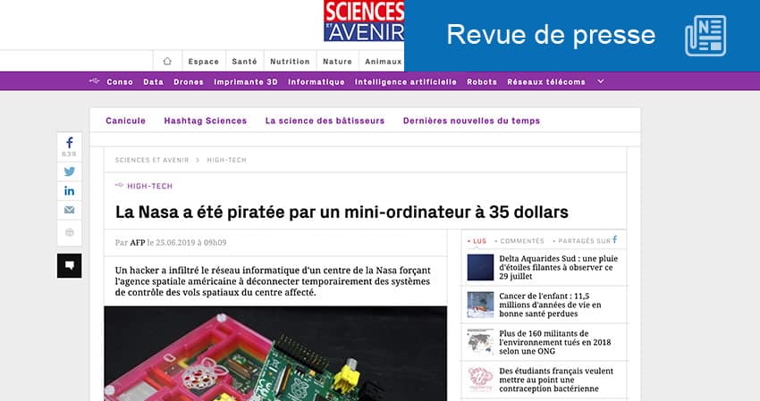 Un mini-ordinateur de 35 dollars baptisé Raspberry Pi et utilisé par des enfants pour coder a été utilisé par un pirate informatique pour hacker un centre de la NASA, rapporte le site SciencesetAvenir. Selon l’agence nationale spatiale, l’attaque a commencé en avril 2018 et s’est poursuivie pendant près d’un an dans les réseaux du Jet Propulsion Laboratory (JPL) avec à la clé un vol d’environ 500 mégaoctets de données. Deux fichiers confidentiels ont été dérobés. L’un d’entre eux contenait des données scientifiques obtenues par le rover Curiosity qui se trouve sur Mars et l’autre des données couvertes par la loi de contrôle à l’export de technologies pouvant être utilisées à des fins militaires.