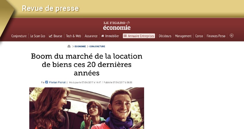 Cet article du Figaro revient sur une étude publiée le 6 avril dernier par l’Insee sur le marché de la locations de biens intitulé « Pelleteuses, voitures, smartphones… : louer plutôt qu’acheter ». Le secteur, en pleine expansion depuis 20 ans selon cette étude pèse ainsi 38 milliards d’euros en 2015 (contre 21 milliards en 1995) et aurait augmenté de 5 % en moyenne annuelle entre 1995 à 2008. À noter que la location de biens et machines d’équipement pour les entreprises représenterait à elle seule 50 % de ce secteur en fort développement, avec en tête, la location de machines industrielles, de conteneurs et de wagons de fret.