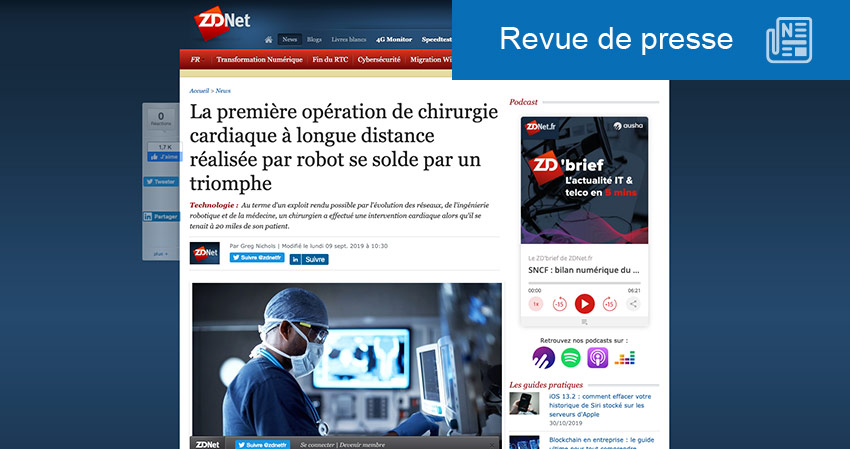 C’est une première mondiale qui se solde par un succès. Le docteur Tejas Patel, président et cardiologue interventionniste en chef de l’Apex Heart Institute à Ahmedabad, Gujarat, en Inde a effectué une série de cinq interventions coronariennes percutanées alors qu’il se tenait à 20 miles de ses patients, peut-on lire sur ZDNET . Pour réaliser cet exploit, le chirurgien a utilisé le robot cCorPath GRX de Corindus et une connexion Internet câblée, manipulant le robot avec un jeu de manettes et un moniteur vidéo. « Le succès de cette étude ouvre la voie à des plateformes de télérobotique à grande échelle et à longue distance dans le monde entier, et sa publication dans EClinicalMedicine de Lancet démontre la nature transformatrice de la télérobotique. Bien que les procédures de robotique à distance en soient encore aux premiers stades de développement, il est clair que nous sommes sur la bonne voie pour élargir l’accès des patients aux soins, tout en réduisant leur temps de traitement », a expliqué ark Toland, président et chef de la direction de Corindus Vascular Robotics.