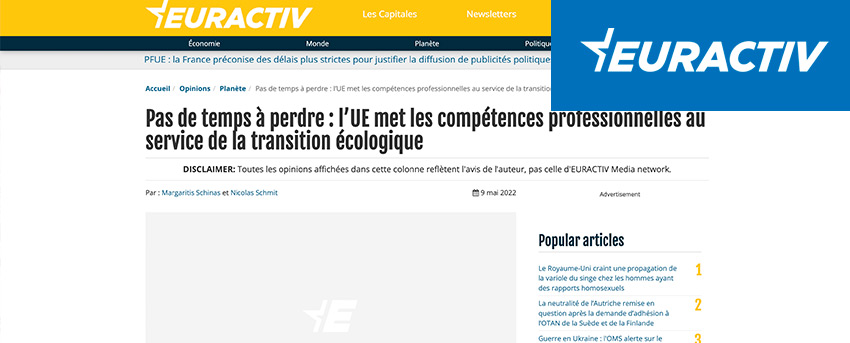 Devant l’enjeu que représente la transition écologique et numérique, la Commission Européenne aide les États membres, les entreprises et les travailleurs à s’y préparer. Elle propose notamment des actions et plateformes axées sur le marché du travail et la formation professionnelle. Par exemple, la Commission Européenne propose aux États membres de les accompagner pour transformer leurs systèmes d’enseignement et de formation professionnels (EFP).